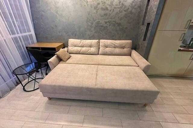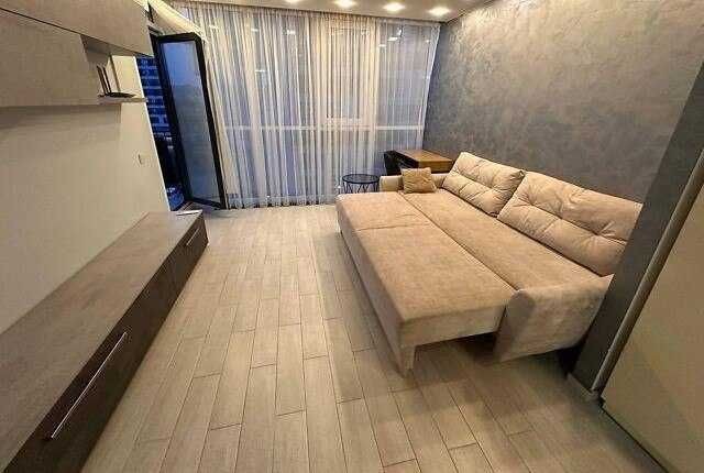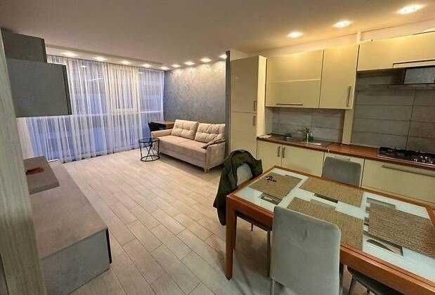 Квартира простора, з дуже зручним плануванням: велика кухня-студія, окрема спальня, санвузол з душем і відкритий балкон. Все зроблено сучасно та зі смаком.