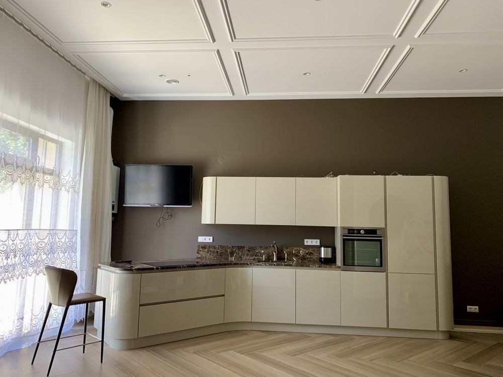 - Простора кухня-студія з виходом на терасу; - Два санвузли: один з душовою кабіною, інший з ванною; - Гардероб; - Затишна спальня з власною ванною кімнатою; Для максимального комфорту встановлено: