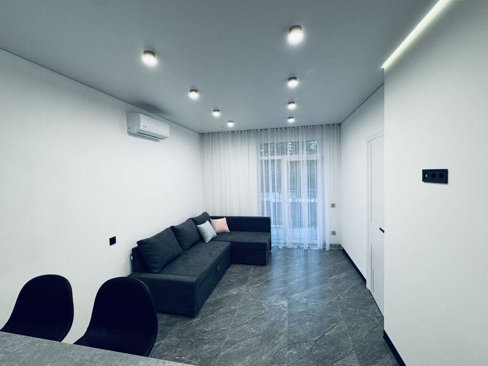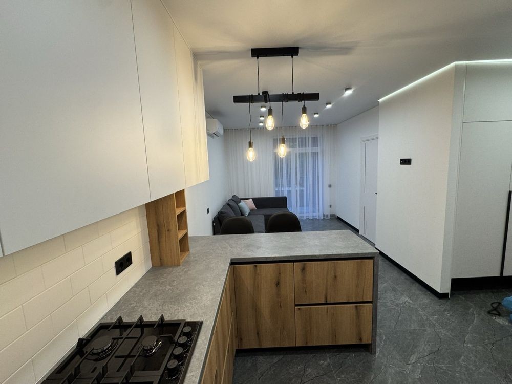 Здається простора 1-кімнатна квартира з кухнею-вітальнею та окремою спальнею.
