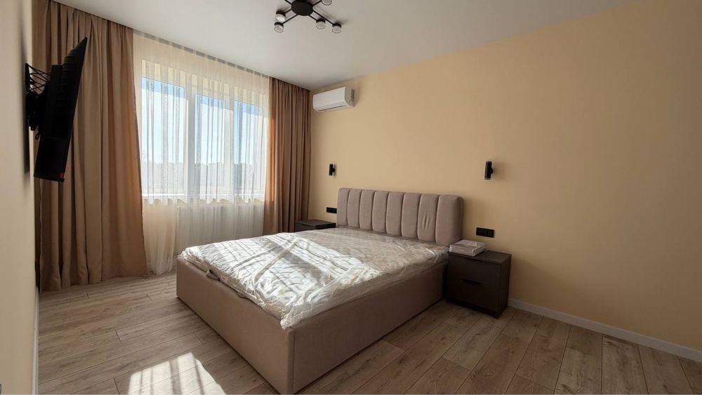 Простора та світла спальня укомплектована кондиціонером, телевізором та містким гардеробом.