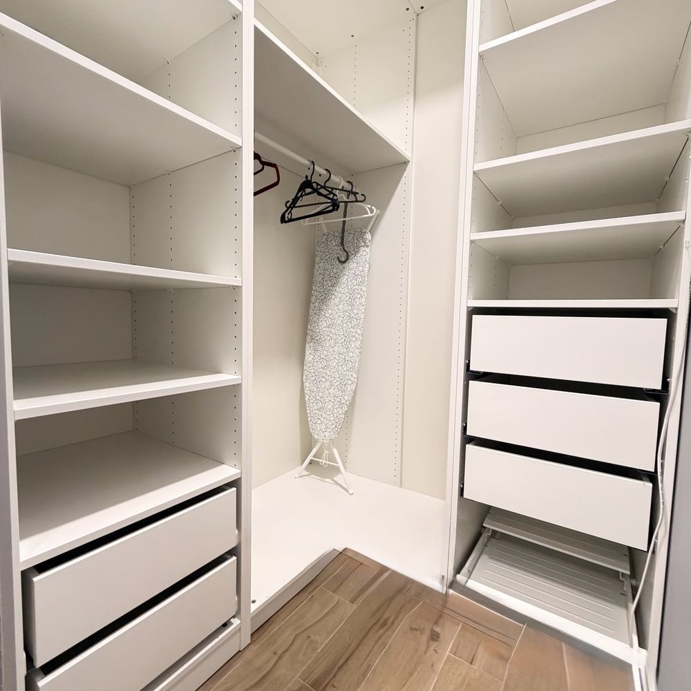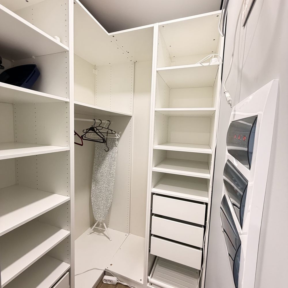 Є просторий гардероб і достатньо місця для зберігання речей.