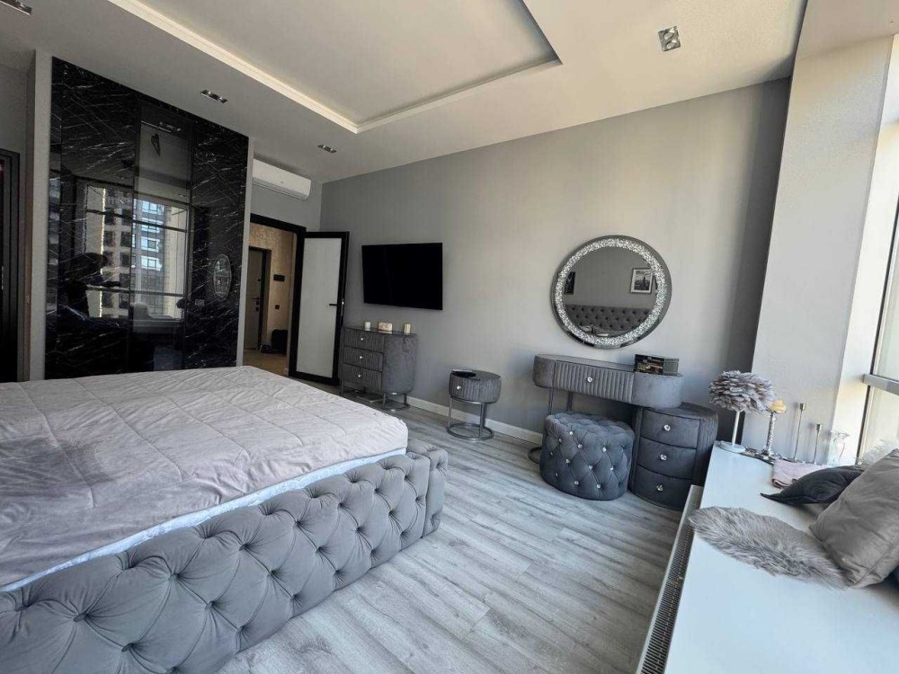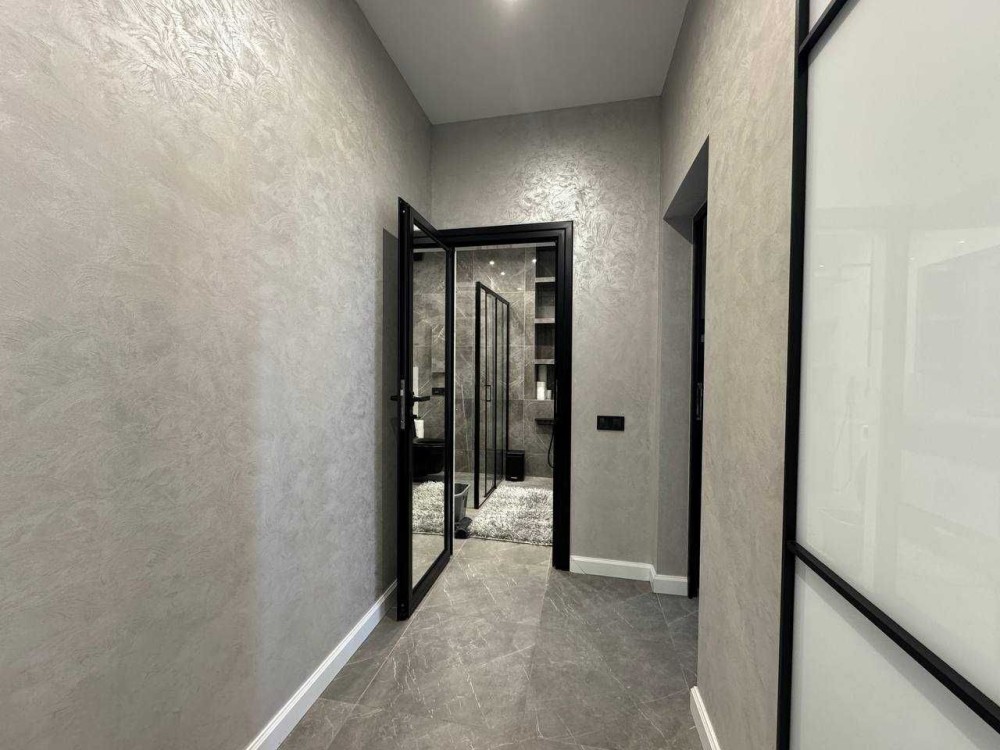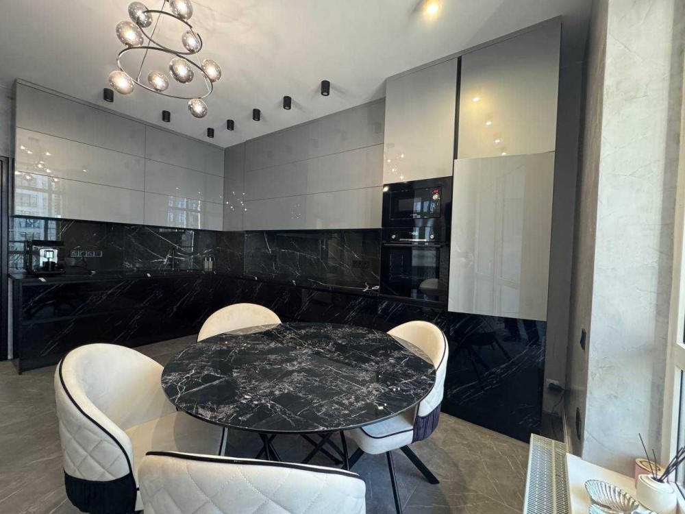 Інтер’єр виконаний у сучасному елегантному стилі з використанням якісних матеріалів, у світлих відтінках, що створюють атмосферу затишку та гармонії. Панорамні вікна забезпечують багато природного світла, а меблі та техніка підібрані з урахуванням комфорту та функціональності. Важливою перевагою є наявність потужної системи автономності — акумулятори на 20 кВт, що гарантує незалежність від відключень електроенергії.
