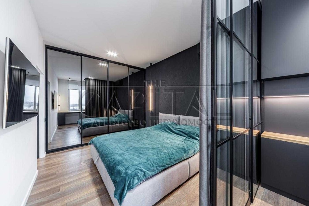 Двокімнатна квартира площею 80 м², розташована на 6 поверсі 30-поверхового будинку, з якого відкривається чудовий панорамний вид на річку.