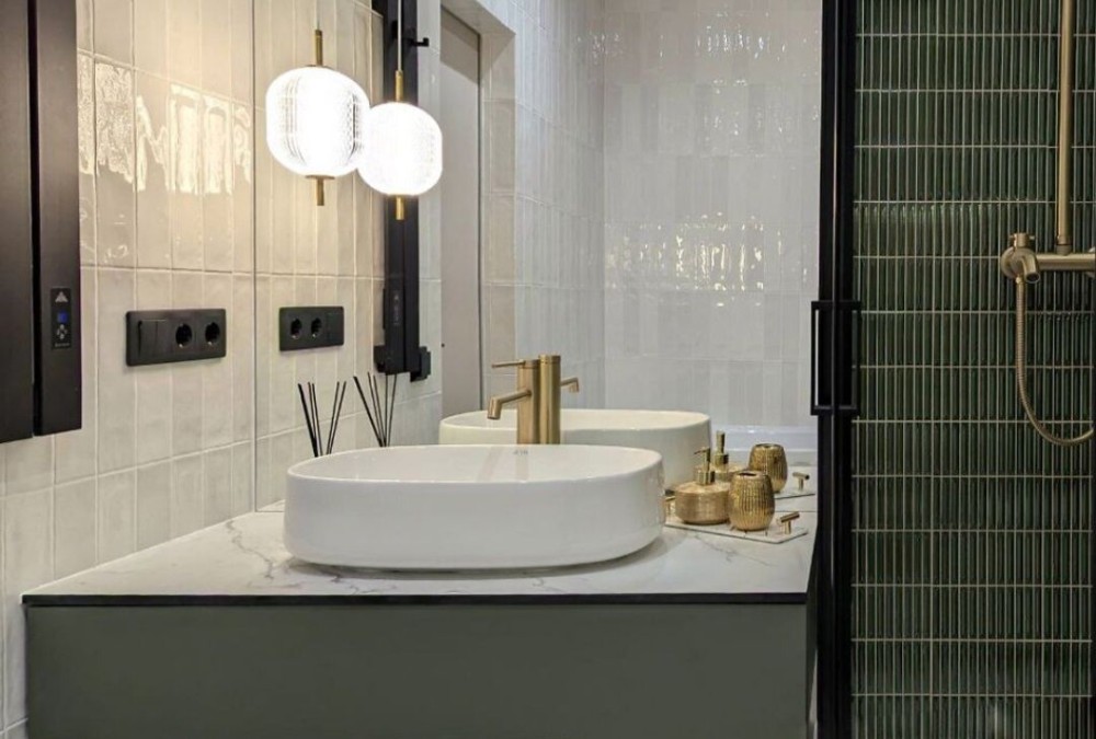 Тепла підлога в санвузлах.Іспанська плитка.сушильна машина ,бойлер на гарячу воду.