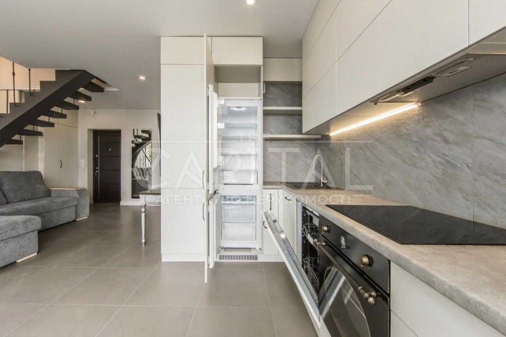 Квартира повністю укомплектована високоякісною і дорогою технікою, меблями з натурального дерева. Зроблено стильний дизайнерський євроремонт, натяжні стелі, освітлення з регулюванням яскравості та теплоти світла, підігрів підлоги на 1 поверсі.