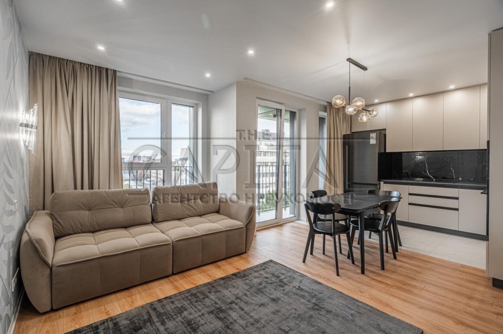 Пропонується сучасна квартира з авторським дизайнерським ремонтом у житловому комплексі "044" в Подільському районі Києва.