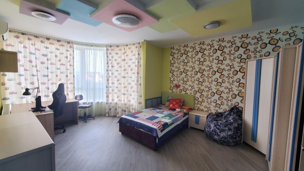 Квартира загальною площею.106м.кв, 3 окремі кімнати +кухня студія.Дитяча біля 10 мкв,2спальні-20 мкв,2 коридори- біля 20 мкв.Повна комплектація: меблі, техніка, інтернет.В квартирі: