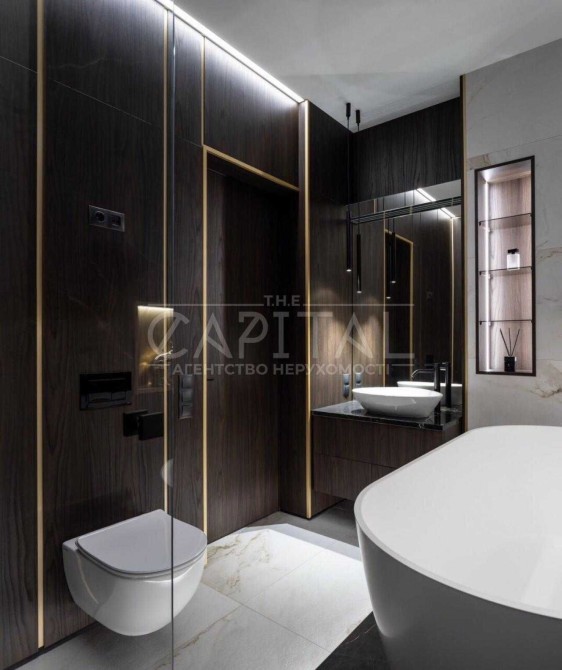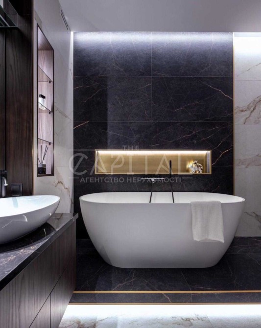 Суміжний санузен в якому встановлена ванна і додатково душова, також, пральна машина з функцією сушіння, встановлений бойлер.