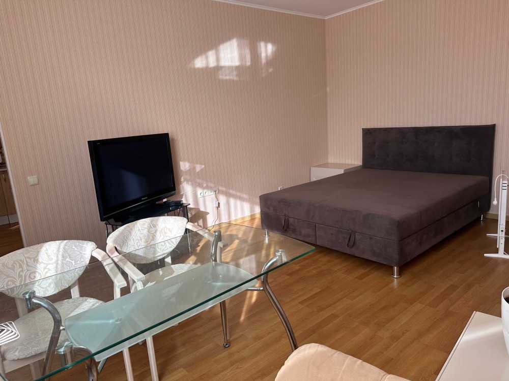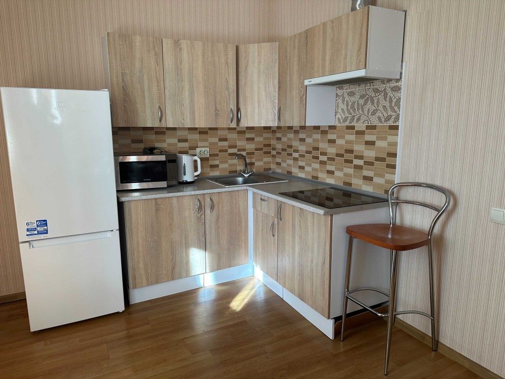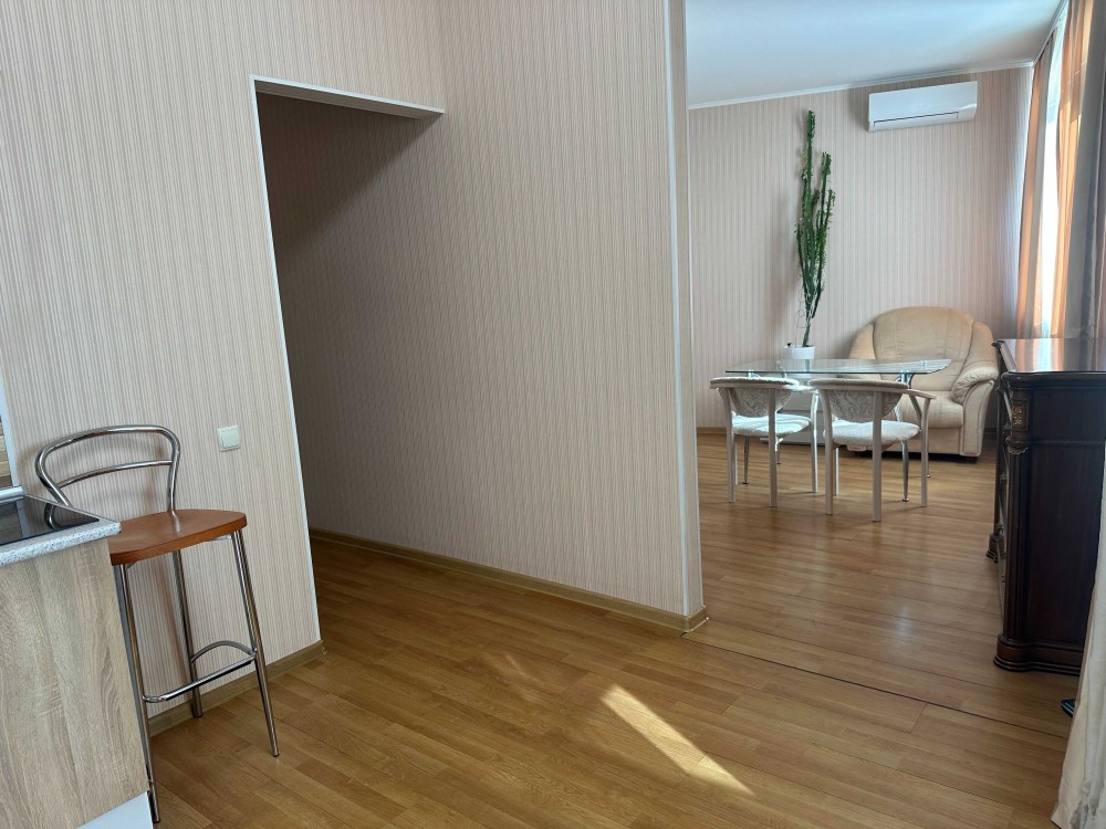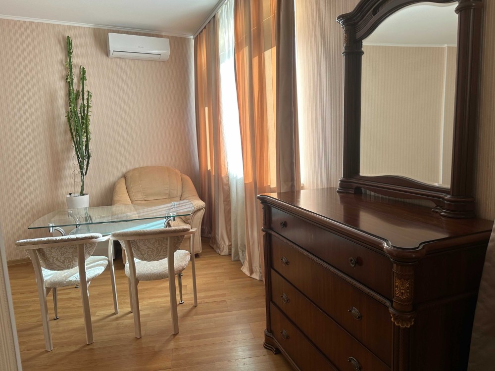 кухня зі всією побутовою технікою,,кімната з двуспальним ліжком,ТВ,комодом кондиціонером,є шафа-купе,в санвузлі вана,пральна машина,бойлер,є балкон.Запрошую на перегляд .В будинку в се фунціонує під час виключення світла.При заселенні оплата за 1 місяць+гарантійна сума(повертається)+50% комісія.
