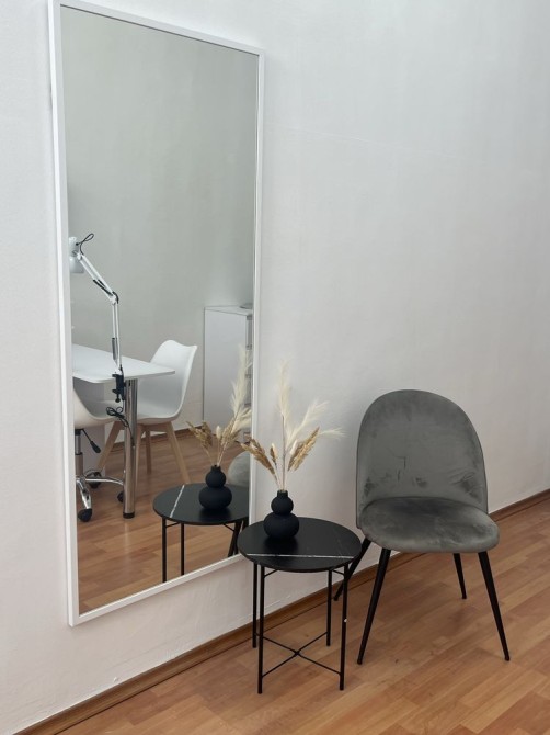В кабинете просторно,уютно и комфортно.Новый ремонт,вся мебель новая,зона ожидания,педикюрное кресло для каждого мастера.В кабинете очень светло так,как солнечная сторона. Так же есть новый кондиционер,чайник,очищенная вода,полочки под лаки,этажерка,комод.