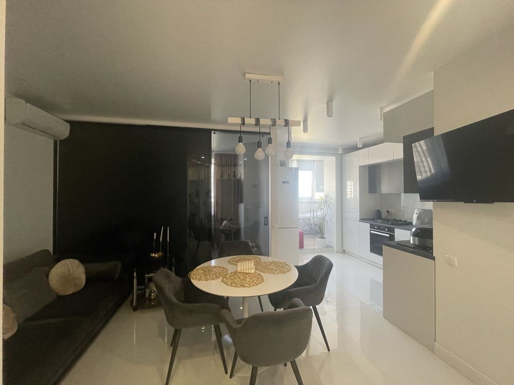 Красива квартира в дизайнерському ремонті з ідеально продуманим плануванням, в квартирі залишається вся побутова техніка,велика гардероба дає можливість помістити абсолютно усі речі , чудове місце розташування Повністю розвинута вся інфраструктура: школа, садочки,магазини,супермаркети,
