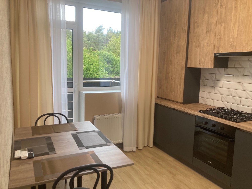 Оренда, новоі 1-км квартири Петропавлівська Борщагівка, вул. Горького,15. По новому Олени Теліги 15. Затишна теріторія, охорона цілодобово, інд.опалення, газ, лічильники. Квартира повістю облаштована для вашого комфорту. 2 поверх, гарний краєвид, Меблі, техініка, кондиціонер, балкон. Новий будинок теплий та якісний. При відключенні світла, працює інтернет (оптичне волокно) і постійно є вода, встановлено інвертора!!! Є укриття з світлом і WiFi. До Кільцевої 300 м. Епіцентр, поруч ліс та озеро! 10 хв м. Житомирська!!!