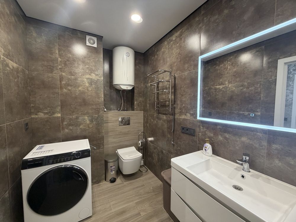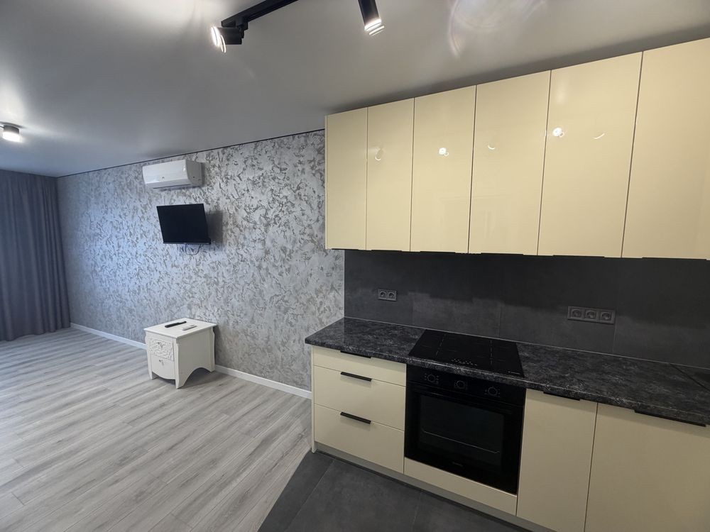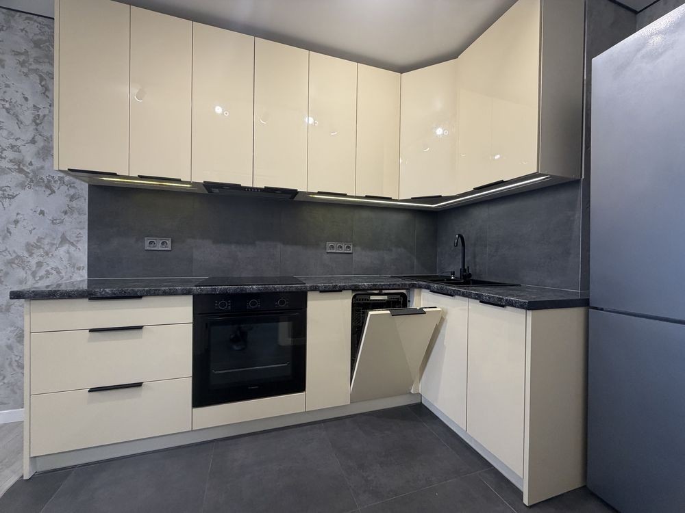 Квартира укомплектована новими меблями та новою побутовою технікою: Вбудована кухня з розкладним диваном , стіл з стільцями, нова техніка , посудомийна машина , кондиціонер, плазмовий ТВ . Окремо облаштована гардеробна та шафа - купе в спальні . Нове двоспальне ліжко з підйомним механізмом .