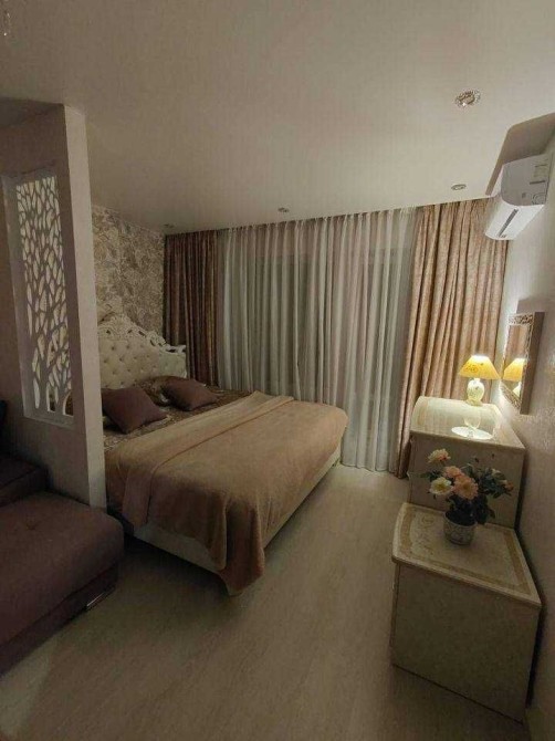 Квартира-студія з якісним сучасним ремонтом та автономним опаленням. Повністю укомплектована меблями та всією необхідною побутовою технікою для комфортного проживання: встановлено кондиціонер, є посудомийна машина, мікрохвильова піч, холодильник і пральна машина.