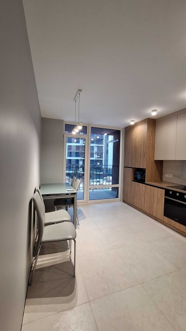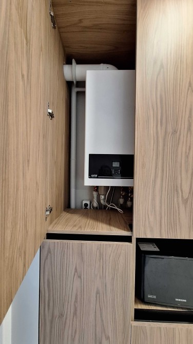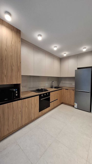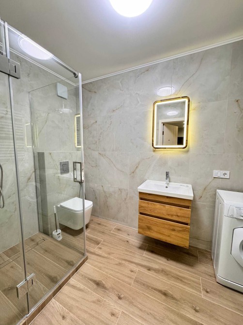 2 кондиціонери (тепло/холод) та підігрів підлоги (кухня, санвузол, передпокій). Є посудомийна машина, мікрохвильова, варильна поверхня та духова шафа, холодильник, пральна машина.