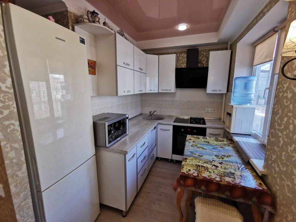 Квартира з заскленим утепленим балконом, кімната світла, великий кутовий диван , із побутової техніки пральна машинка, холодильник, кондиціонер, духова шафа, мікрохвильова піч, посудомийна машина, бойлер, пилосос, телевізор