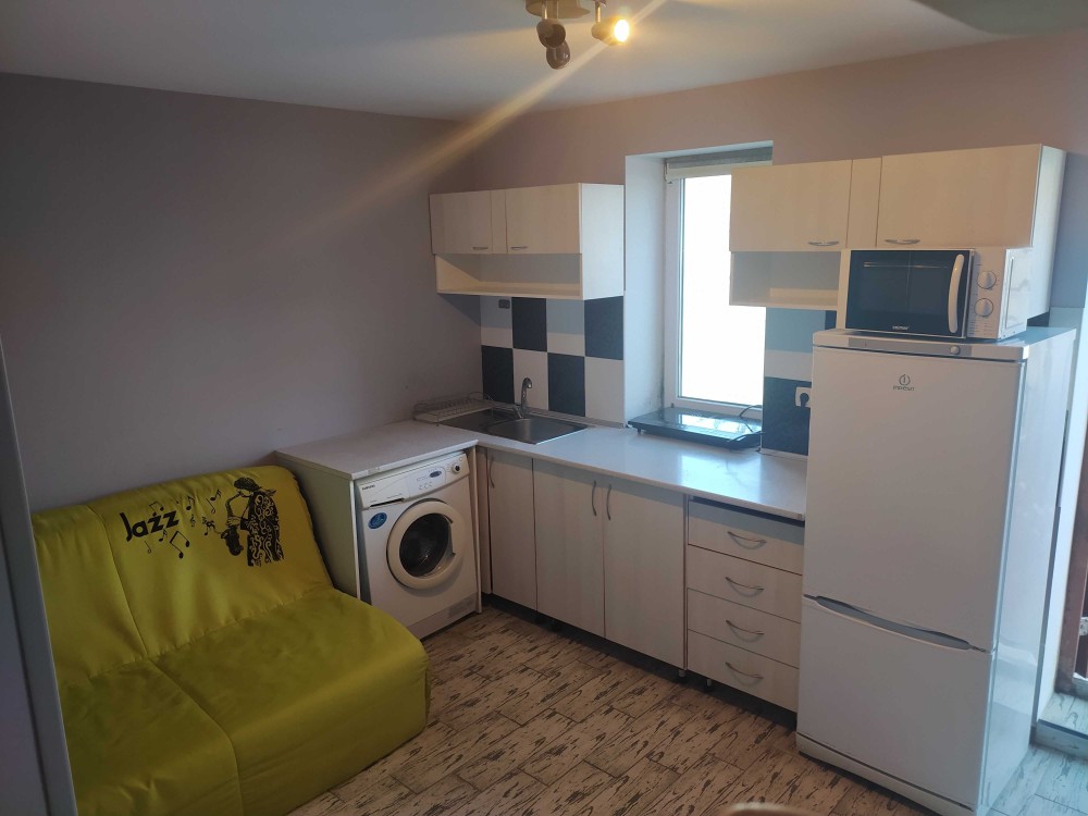 Кухня студія , санвузол сумісний-душ,тепла підлога . Спальня на другому рівні з вмісткою шафою та кондиціонером.