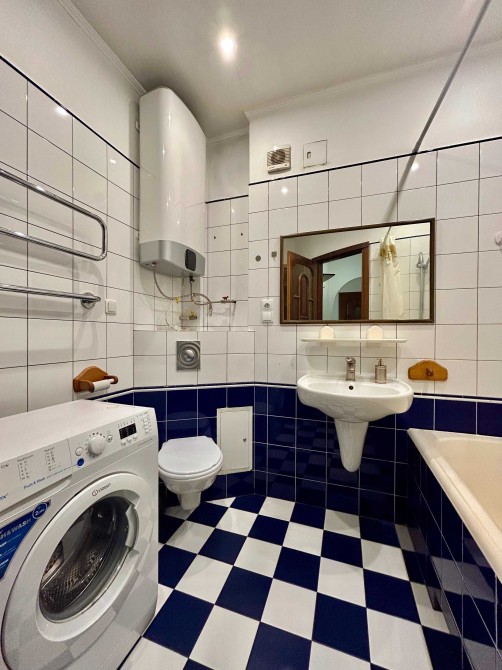 необхідною технікою, ванна кімната з пральною машиною та бойлером.