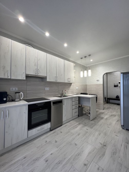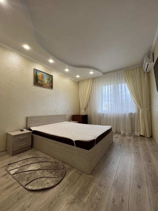 Велика, окрема обладнана всім необхідним для життя кухня. Широкий квадратний коридор із дуже обємною шафою купе. Житлова кімната обладнана двуспальним ліжком із двома прикроватними тумбами, шафою купе, великим смарт телевізором, сучасним кондиціонером. В ванній кімнаті душовий бокс, пральна машинка, бойлер....