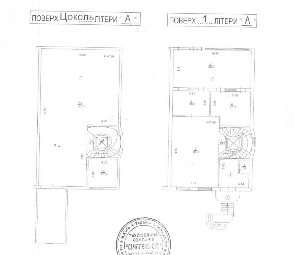 Загальна площа 722 кв.м, у т.ч. підвал/підземний паркінг – 172 кв.м. Складається із 3 поверхів + підвал. Є ліфт.