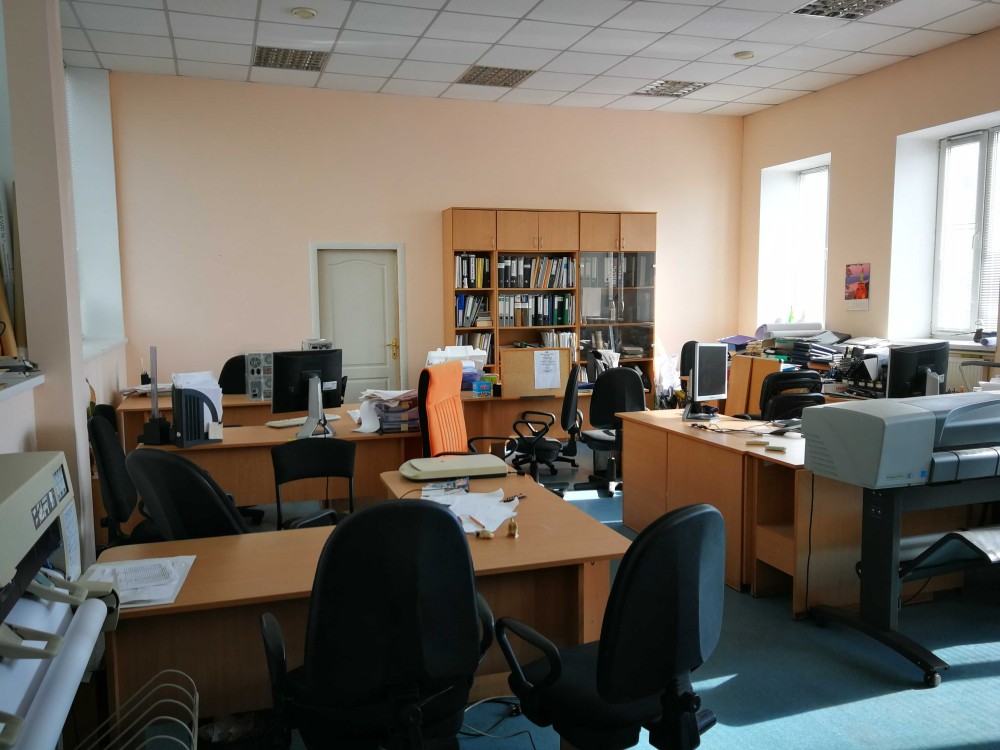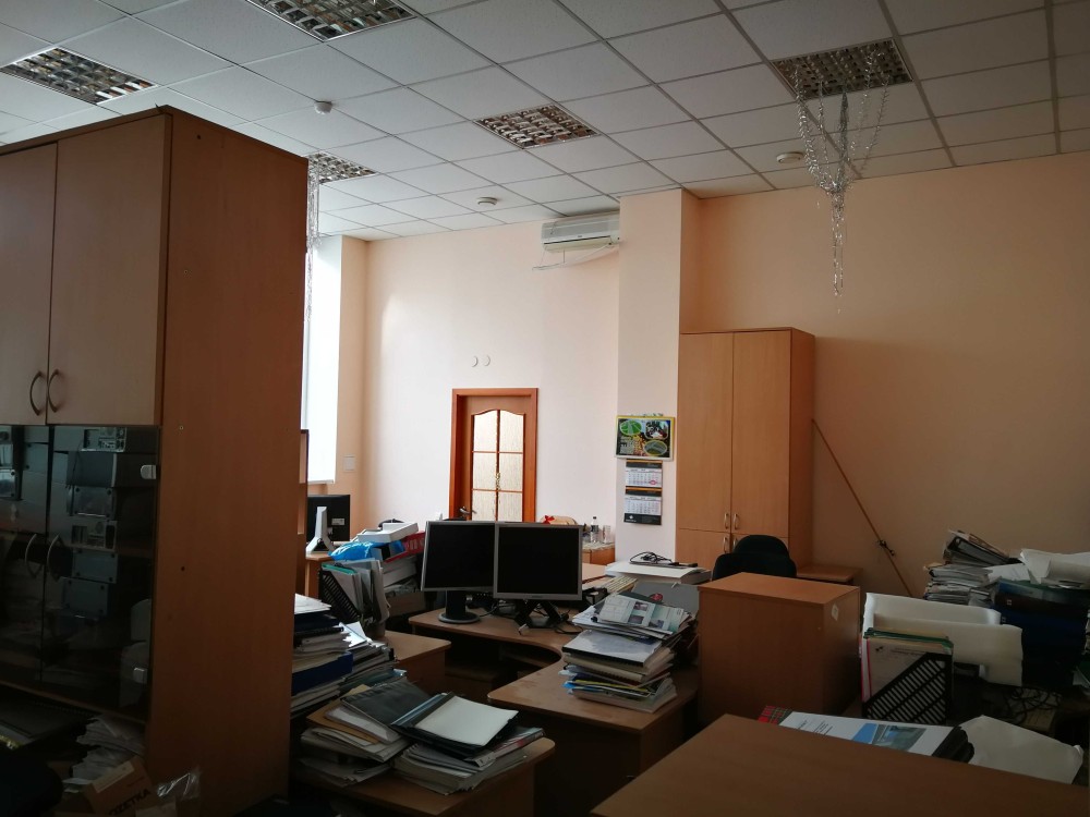 Офіс має кабінетну систему (але конструкція дозволяє зробити опен-спейс), високий - 3,5 м.