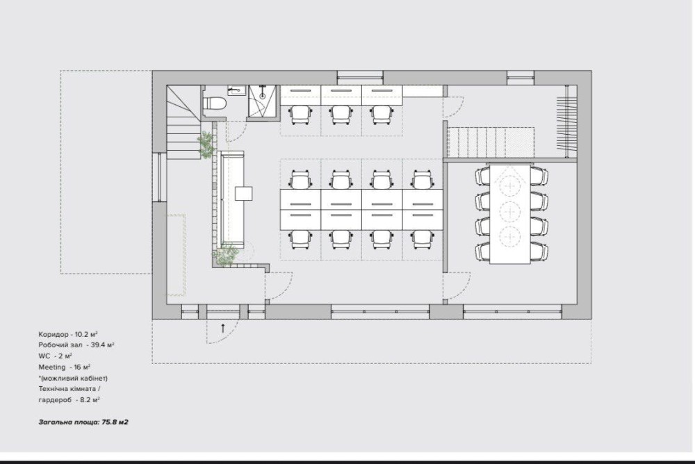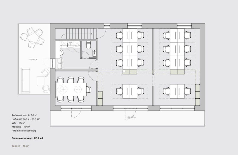 • робочий зал 30 м²