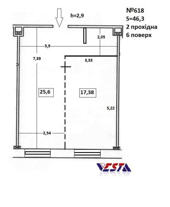 Пропонуємо офіс 618 на 2 кабінети площею 46,30 м², на 6 поверсі, 2 прохідні. В офісі ремонт – на підлозі лінолеум, металопластикові вікна, підвісні стелі, стіни забарвлені. Вартість 250грн/м2