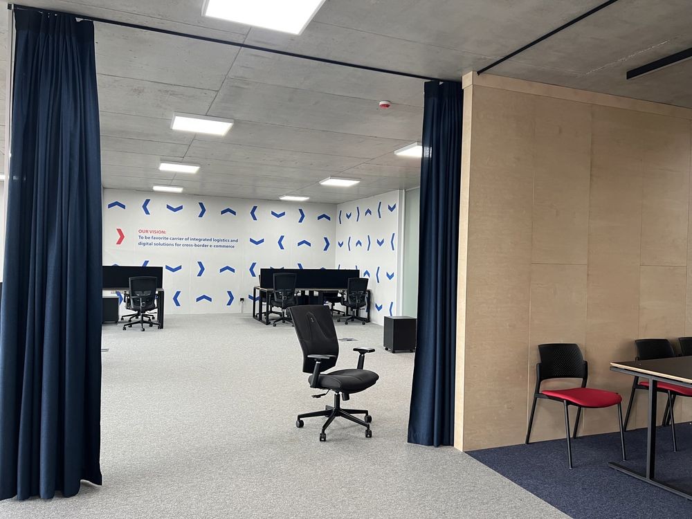 В офісах з панорамних вікон відкривається розкішний вигляд на місто.