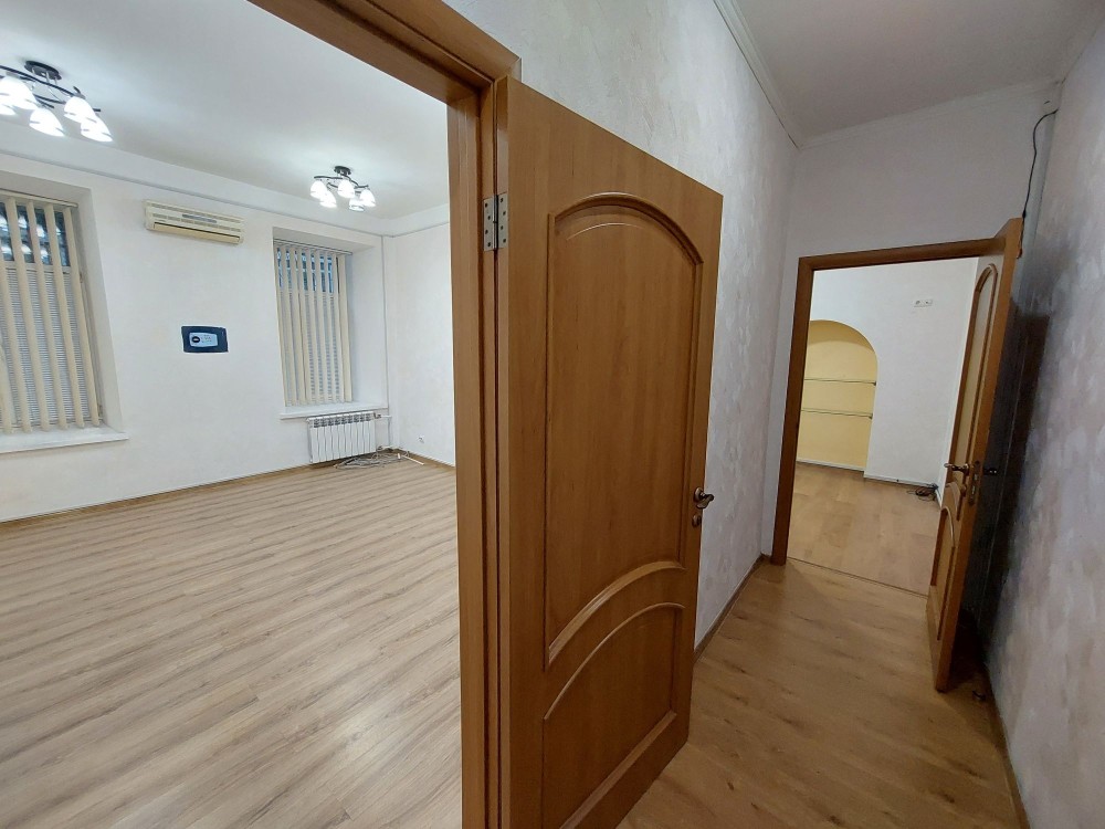 Оренда офису на першому поверсі. Вулиця Саксаганського 102 б. Площа - 60 м2. Три окремих кабінети, санвузол. Броньовані двері, домофон, сігналізація, на вікнах решітки, кондиціонери. Вхід з двору, затишно, розвинута інфраструктура. Зручно під офіс, нотаріат, клініку. Житловий фонд (невиликі комунальні витрати), Вартість оренди - 23000 гр/міс.