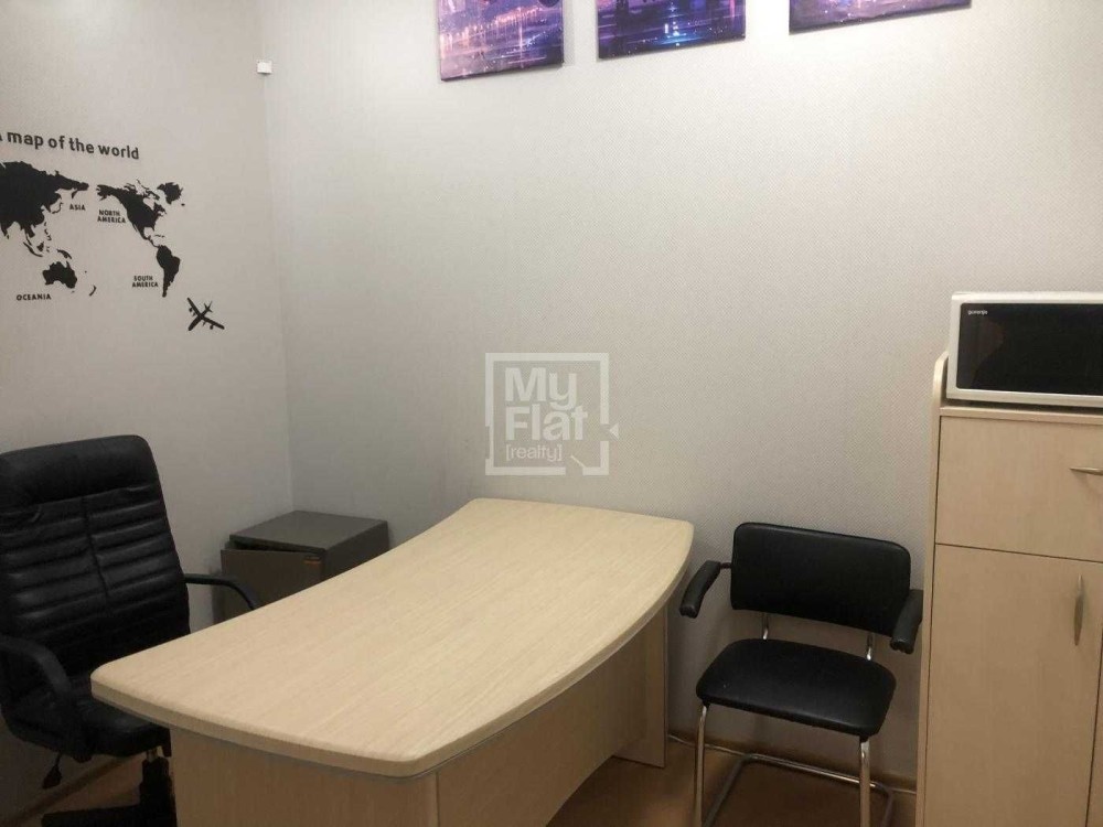 Приміщення мебльовано офісними меблями (5 столів з стільцями, 2 шкафи, тумби, холодильник,сейф, диван тощо).