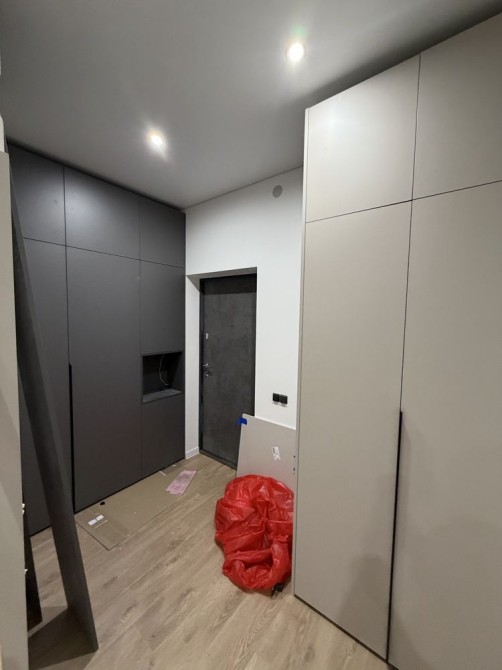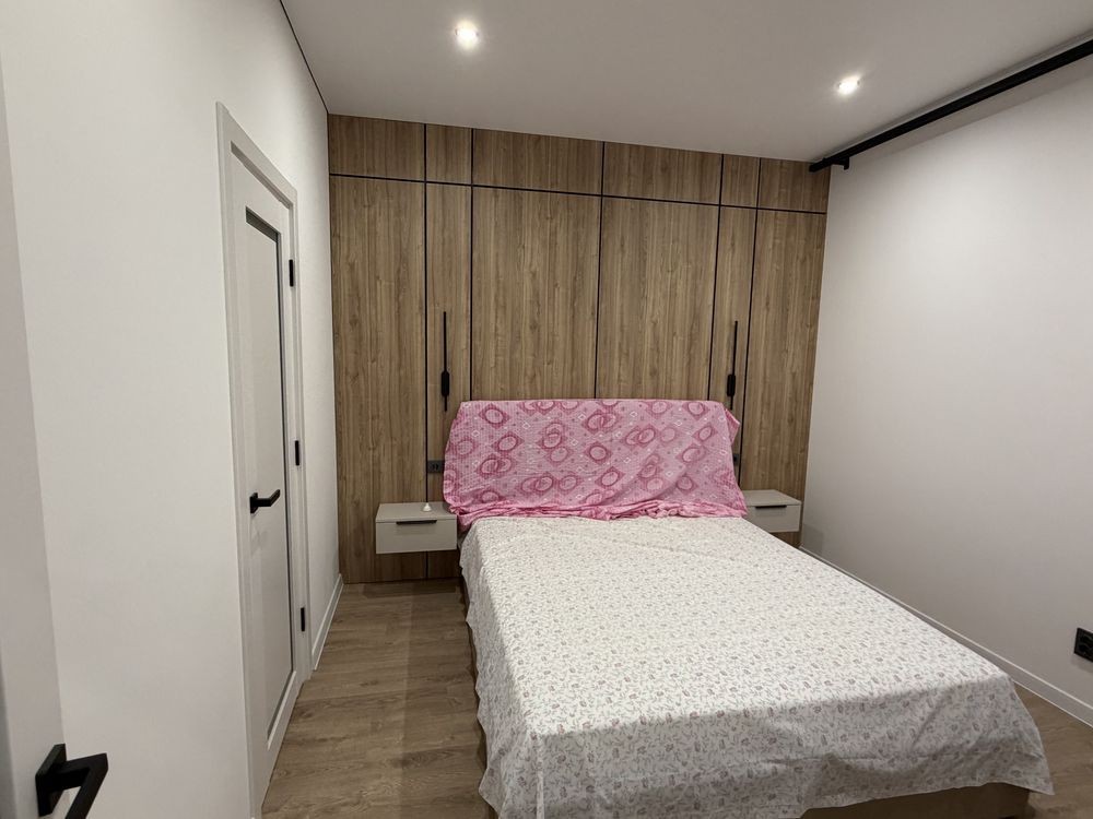 Оренда півторашки у ЖК Сіті люкс .Кухня студія з відкритим балконом, простора спальня з окремою глибокою гардеробною, та вхідна зона з двома шафами для зберігання речей та взуття.