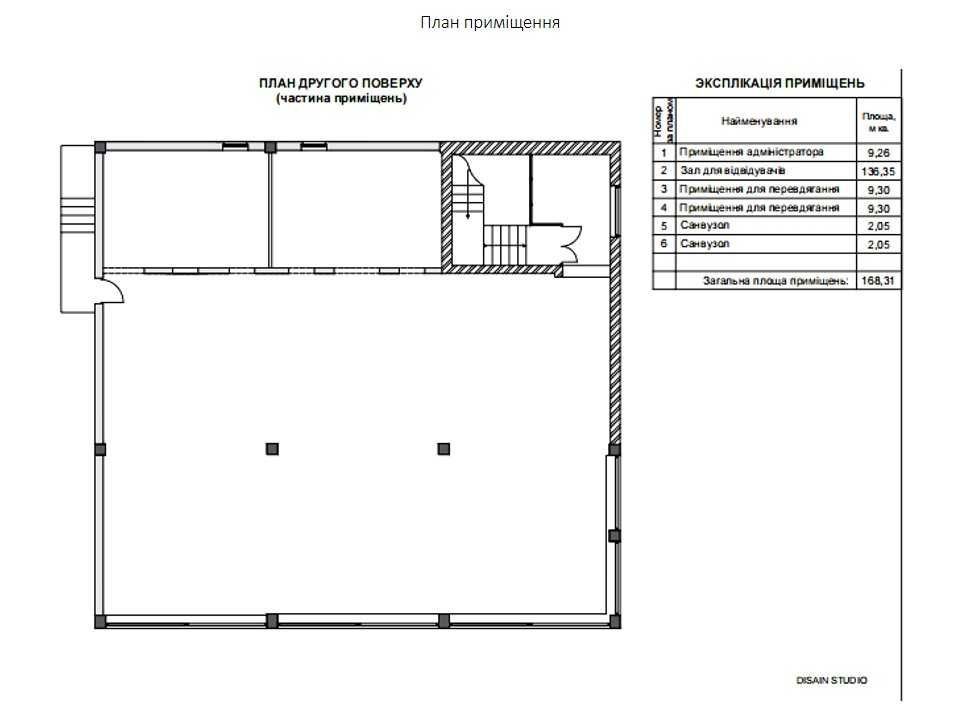 Площа приміщення 168 м.кв.