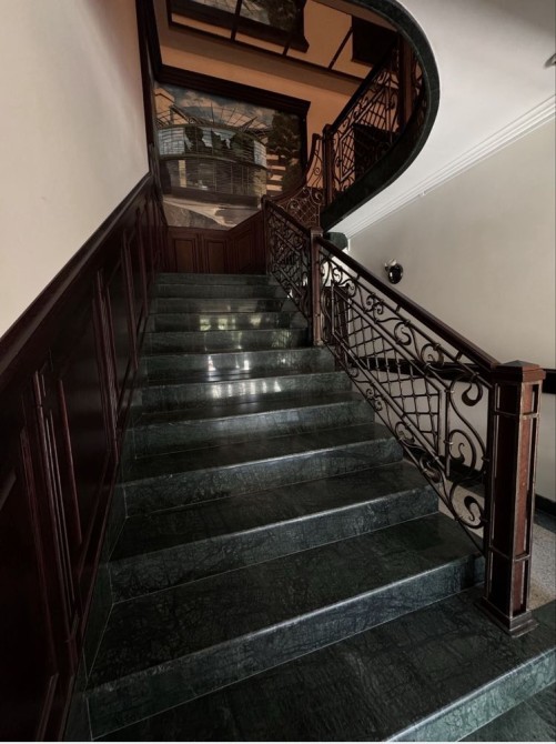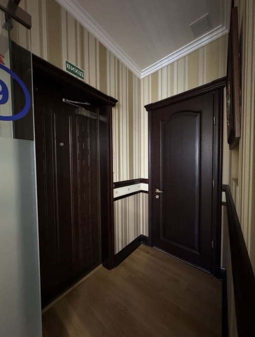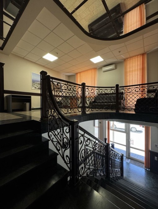 Приміщення складається з великого холу-приймальні, далі — основний кабінет з виходом на балкон, ще один просторий кабінет — теж з балконом, санвузол, і родзинка офісу — окремий, повністю ізольований кабінет директора з власним санвузлом та окремим входом.
