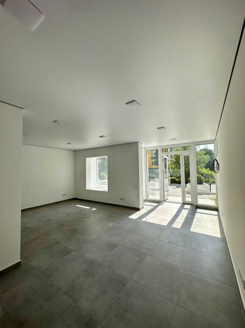В приміщенні великі панорамні вікна в підлогу. Поруч великий жилий масив, в будинках яких особо немає комерційних приміщень.