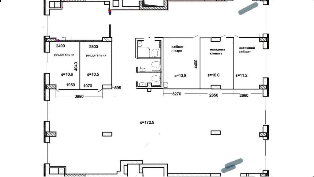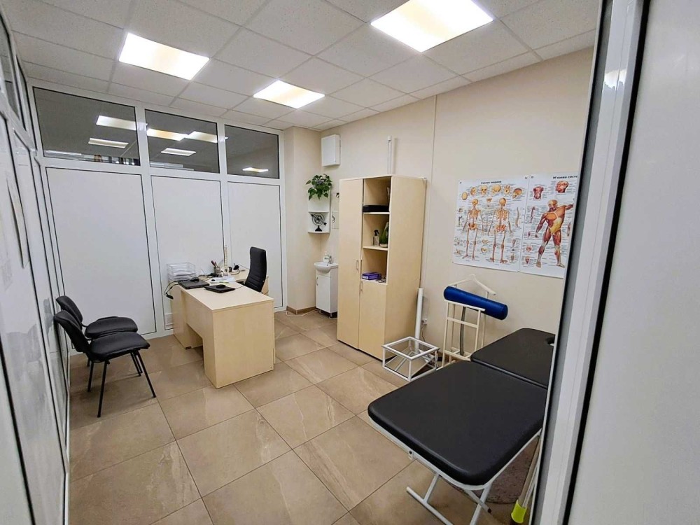 Новобудова, фасадний вхід, фасадні вітрини, загальна площа 252 м.кв., два входи, кухня площею 17 м.кв.(омебльована), роздягальні, кабінет лікаря, оглядова кімната, масажний кабінет з легких конструкцій (можна демонтувати ).