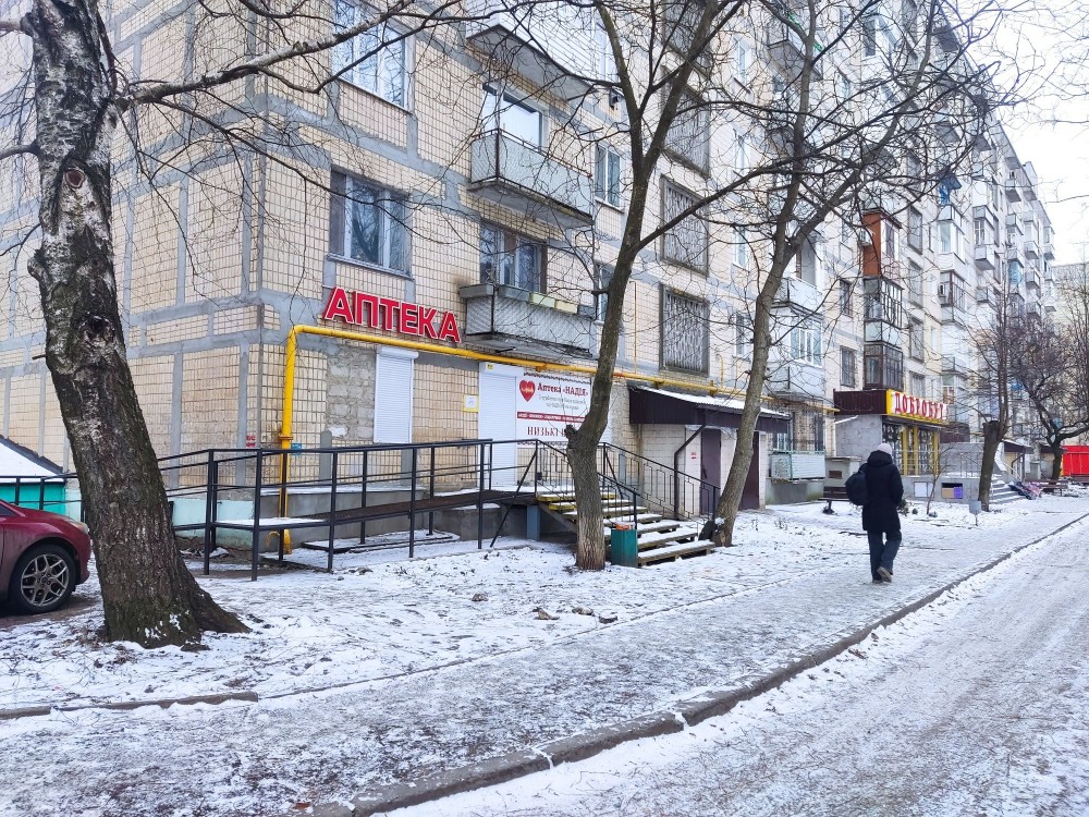 Самий густонаселений район міста, великий трафік людей, з 9 поверховими будинками. Поряд Продуктовий магазин, Поліклініка, кафе Добробут.