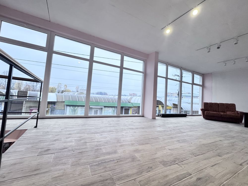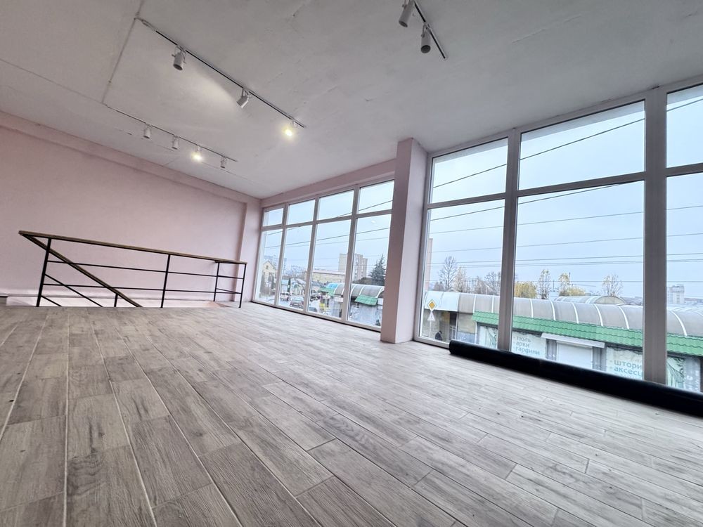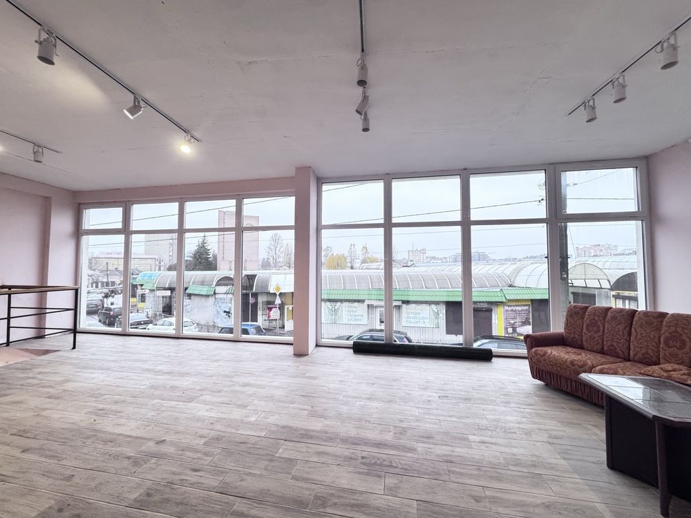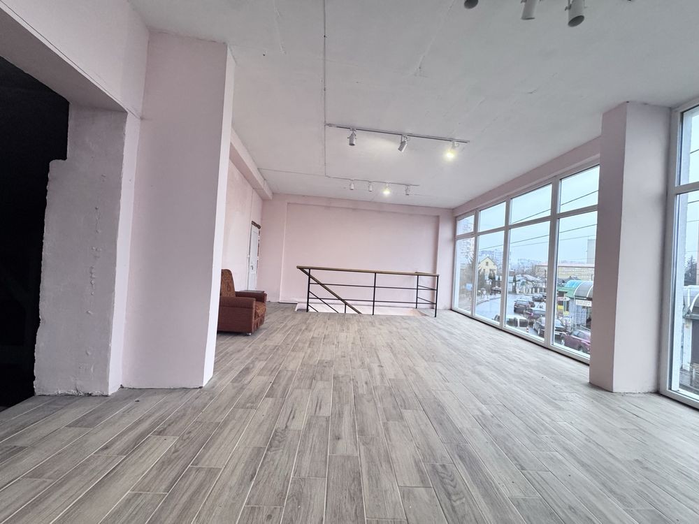 Простора зала з великими вітражними вікнами, ідеальна для шоуруму, салону, офісу, студію, навчальний центр або інший вид діяльності
