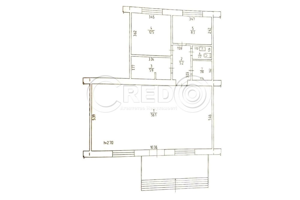 - Висота стелі – 2.70м.