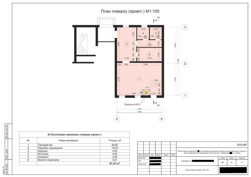 вул. Шевченка (р-н вул. Турянського), 1 поверх, фасад. Площа 81,5 м². Потребує ремонту – питання до обговорення, опалення - необхідно встановлювати кондиціонери чи електрообігрівачі, електрична потужність – 11 кВт, інтернет, бойлер. Два паркомісця у дворі, запасний вихід. Об’єкт розташований в торговому ряду, поруч з двома пішохідними переходами.