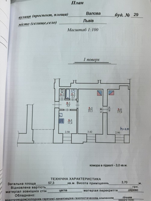 Оренда приміщення вул.Валова загальна площа 57м.кв. 1пов