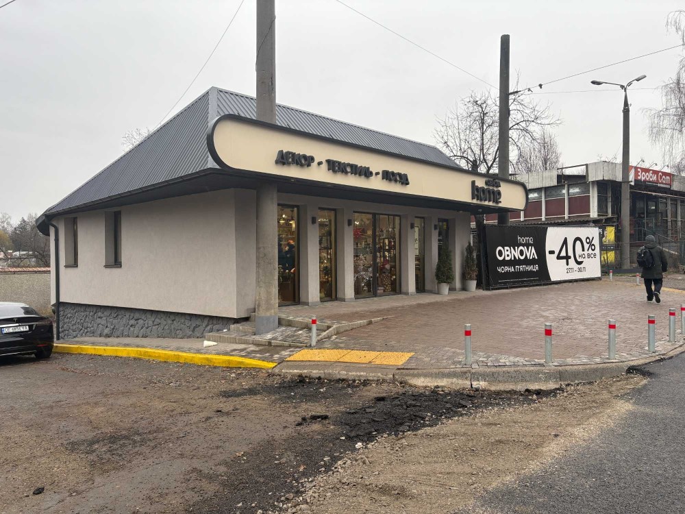- Широкий фасад і панорамні вітрини, що забезпечують постійну видимість бренду.