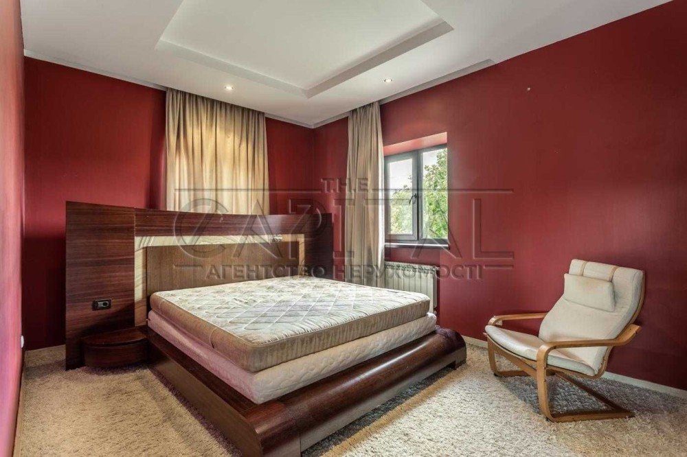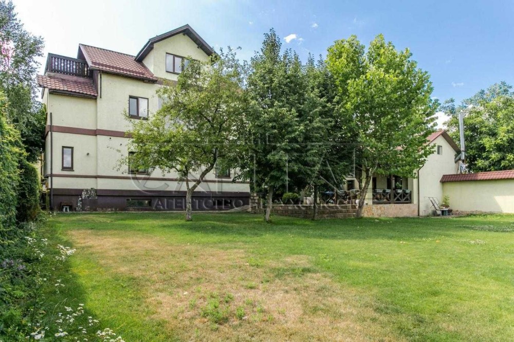 Кухня-вітальня, 5 кімнат (4 спальні), кінозал, підвальне приміщення (бомбосховище / спортзал), гардеробна, 2 санвузли, гараж, гостьовий будинок з банею та більярдом.