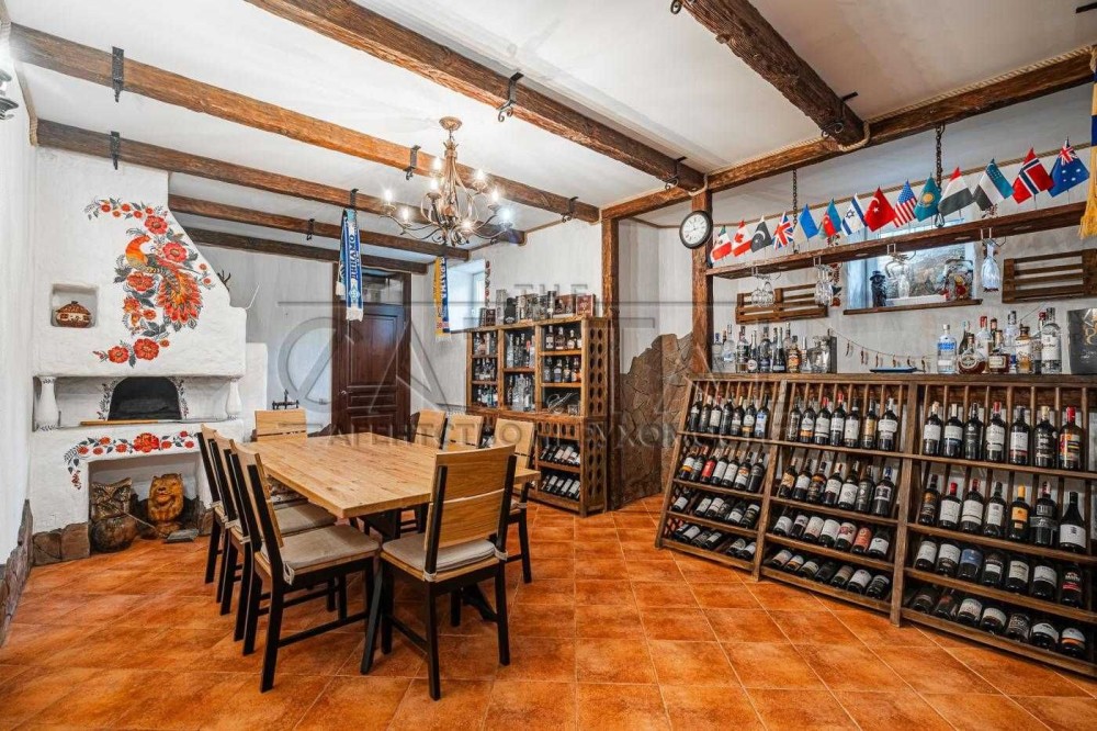 Цокольний поверх (придатний як бомбосховище): столова зона з піччю та власним баром, кухня, , сауна, санвузол.