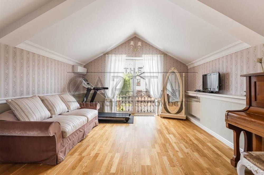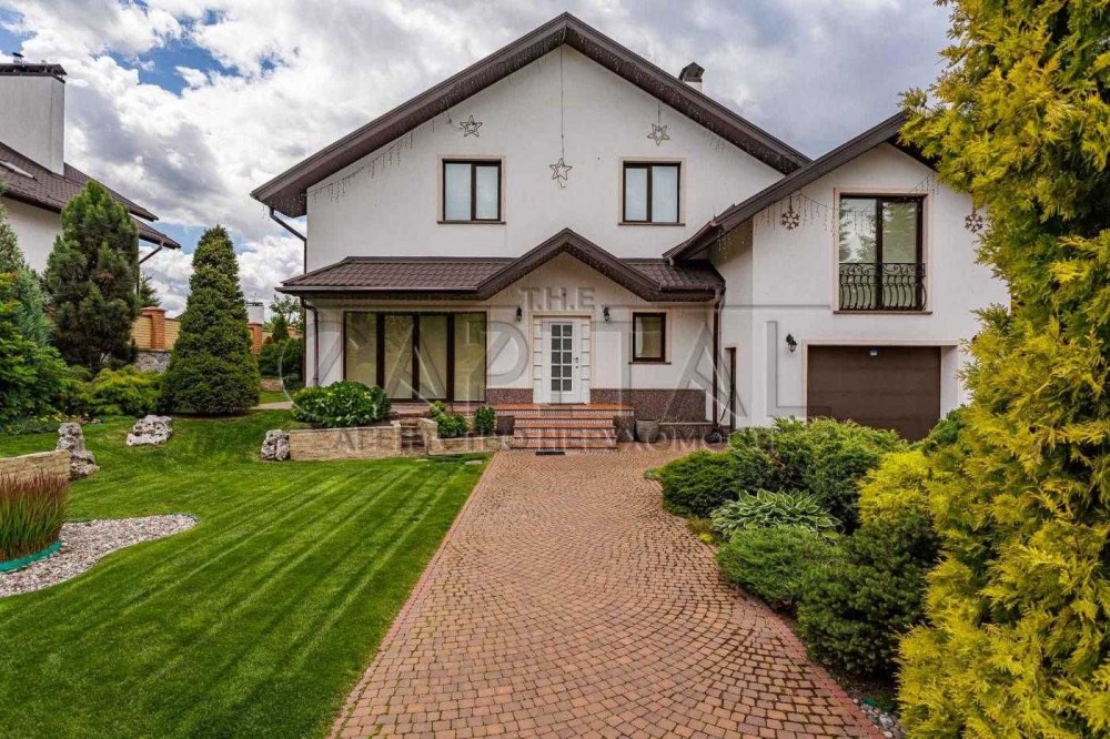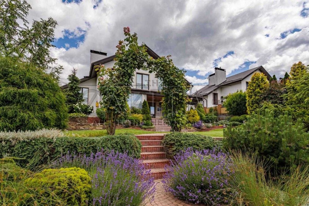 Будинок розташований на доглянутій ділянці площею 12 соток із професійним ландшафтним дизайном, хвойними деревами та зонами відпочинку.