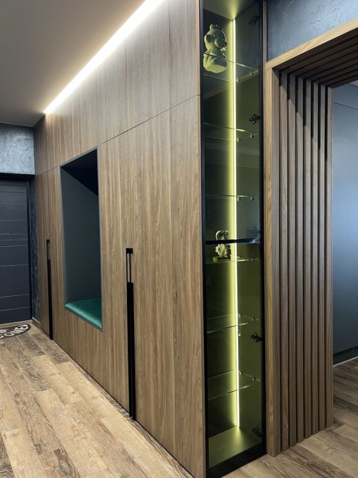 Підігрів підлоги по всій квартирі, окрім кімнат. З середини, між кімнатами зроблена шумоізоляція.