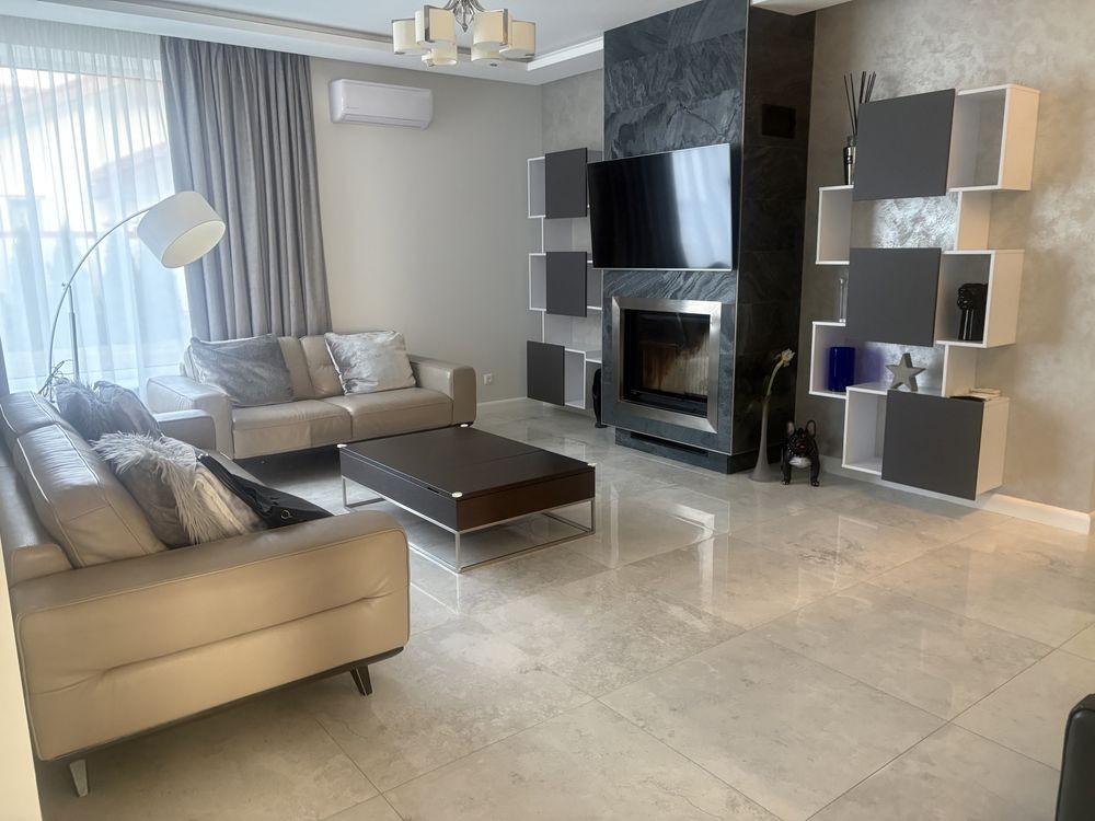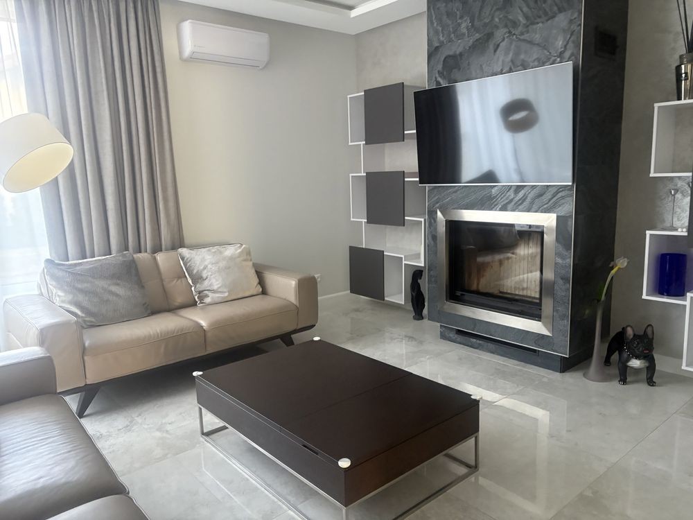 Будинок має 5 кімнат: майстер-спальню з власною гардеробною, та санвузлом ,дві дитячі з ігровою зоною і своїм санвузлами, також будинок має гостьову кімнату,кабінет і вітальню- з каміном .