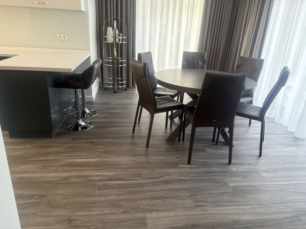 Будинок повністю укомплектований меблями та технікою преміум-класу. Усі матеріали - натуральні або інноваційні: дерево, камінь, мікроцемент, тактильна плитка.