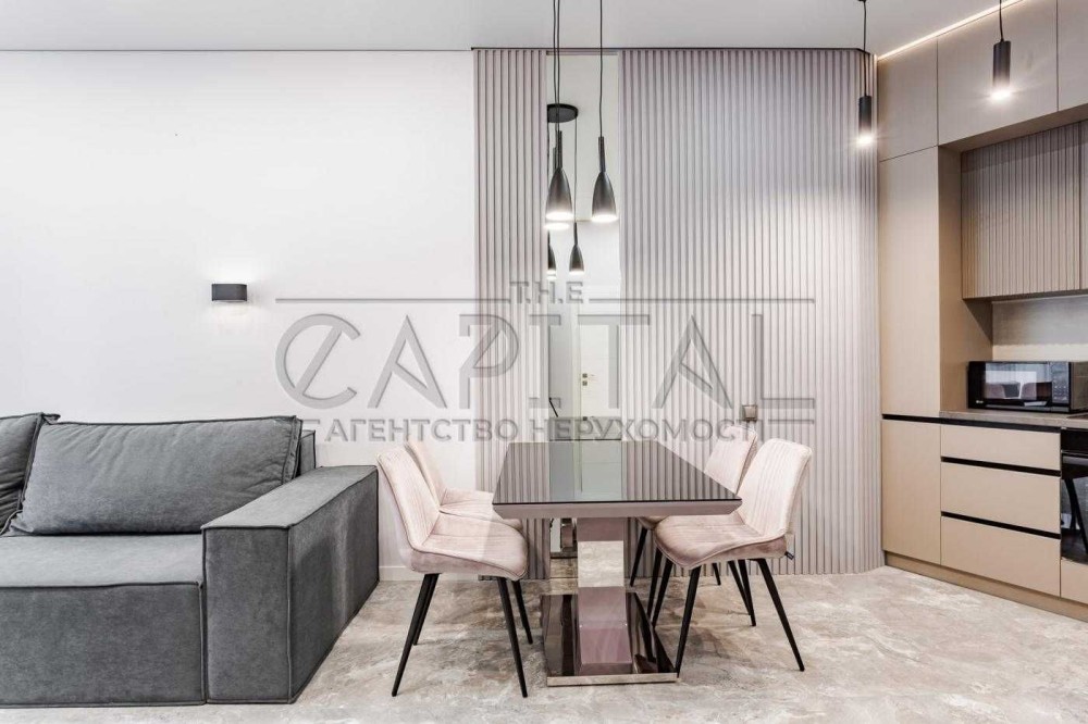 Житло повністю укомплектоване для комфортного проживання. Меблі, виготовлені на замовлення, мають систему відкривання push-click з доводчиками, а побутова техніка — від відомих брендів, що гарантує надійність та зручність в експлуатації.