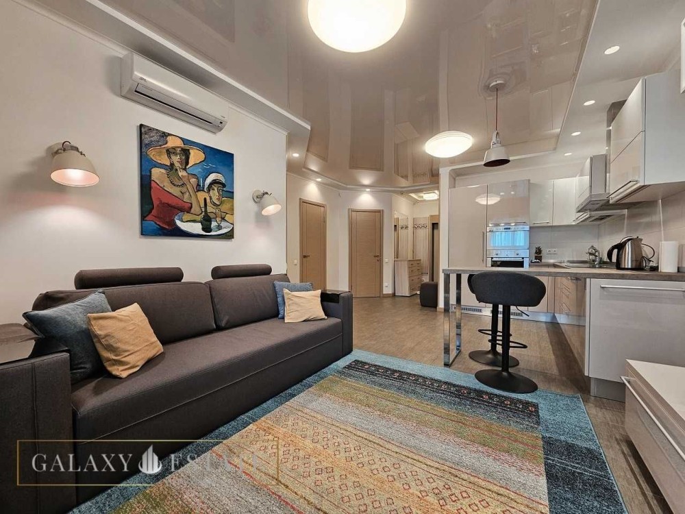 Житло повністю укомплектоване всім необхідним для зручного проживання: тепла підлога, кондиціонери, посудомийна машина, розкладний диван та інша техніка й меблі.