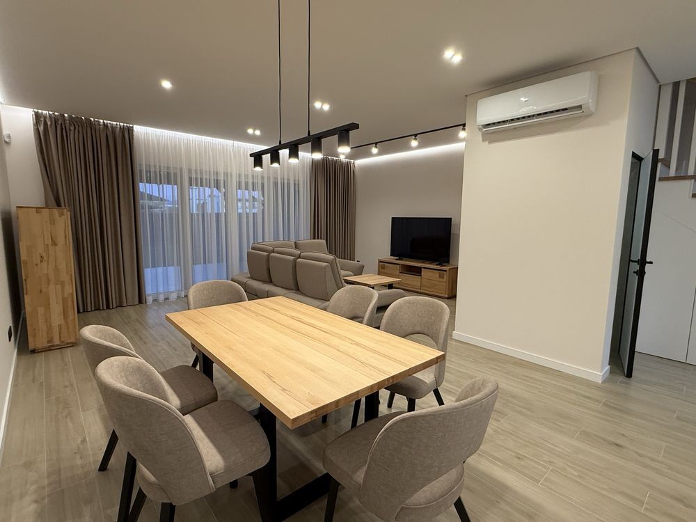 Оренда таун хаусу в New Village в пригороді м.Ужгород . Укомплектований всім необхідним для комфортного проживання. Три окремі спальні, гардероб, два санвузли, дворик, є зарядка для електромобіля.